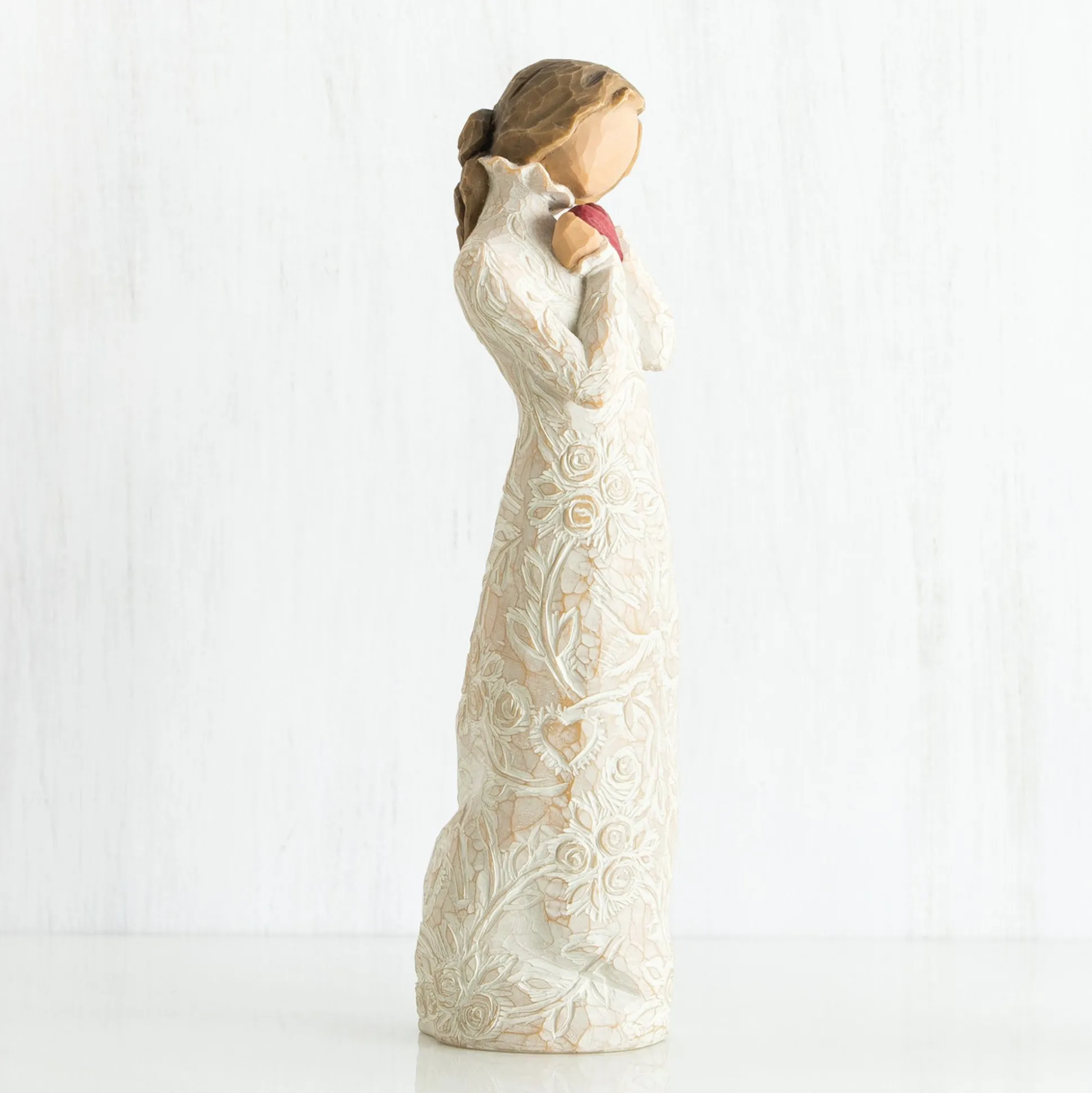 My Daughter Lives In France, So I’Ve Traveled There Quite A Bit In The Last Few Years. I Enjoy The Art And Architecture, The Gorgeous Countryside, Learning The Language… It’S Truly A Culture Of Romance. So In Sculpting This Piece About Love, I Wanted It To Have A Little More Style And Mystique… A Sophistication, An Elegance… I Made Changes To The Dress — Extending Sleeves And Neckline. I Love The Challenge Of Starting With A Solid, Opaque, Hard Surface, And Carving And Carving Until It Looks Like Embellished Lace. Although Influenced By France, Je T’Aime Is A Universal Piece. The Sentiment Moves From The Universal, To The Personal One-On-One. ‘In Any Language, It’S You I Love.'” —Susan Lordi