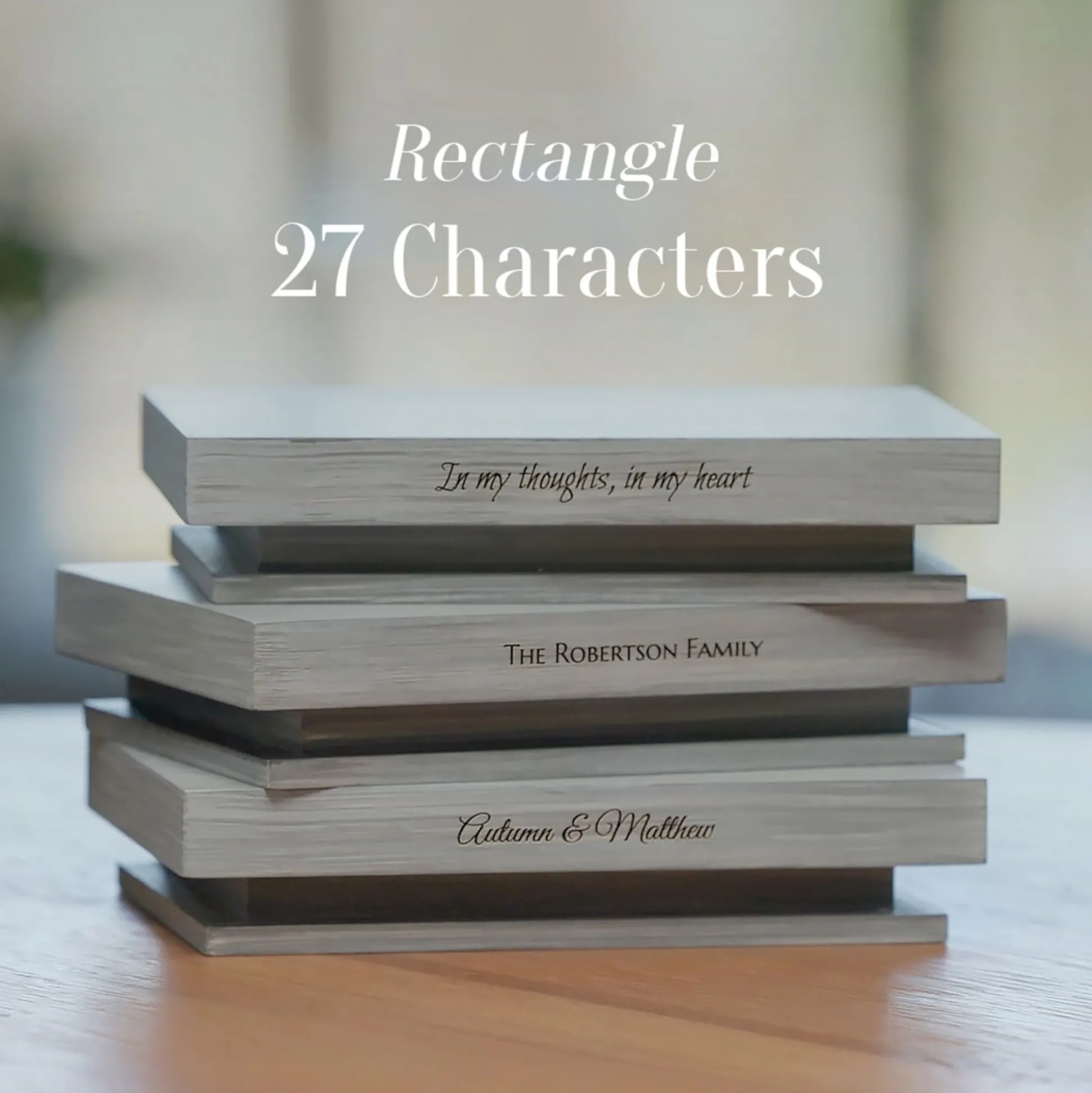 Personalized Rectangle Shelf Showcases A Larger Or Wider Figure, Or Grouping Of Two Figures And/Or Angels. Can Be Used As A Flat Pedestal Or Hung On A Wall. Crafted And Hand-Painted In A Blue-Gray Color That Complements The Sculptures, This Shelf Is A Beautiful Way To Display Your Gift Of Willow Tree. Choose One Of Three Fonts And Compose Your Own Words For A Truly Unique Gift. Personalization Is Done With A Laser Engraving Tool Which Permanently Etches Your Message Into The Shelf Surface (Not An Applied Sticker Or Ink). Therefore, Personalized Shelves Are Not Returnable.